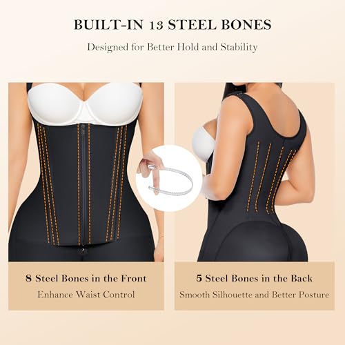 • ADJUSTABLE STRAPS AND OPEN BUST STYLE: This faja body shaper tummy control features 3-level adjustable shoulder straps for a customized fit that adapts to different torso lengths. The open bust design allows you to pair it with your own bra while offering gentle support. Made with skin-friendly, high-stretch fabric in the buttock area, this faja colombiana naturally lifts and comfortably enhances your curves.