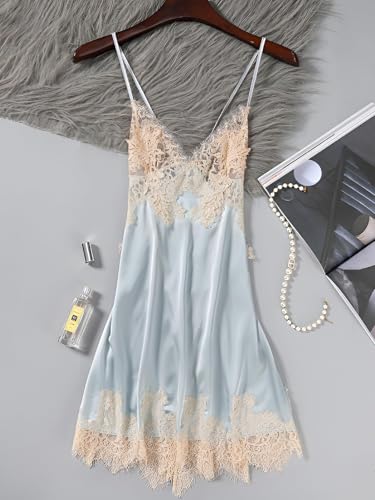 More information about Lilosy Sexy Silk Lace Up Backless Satin Applique Floral Lace Babydoll Lingerie Dress with Tong 2 Piece