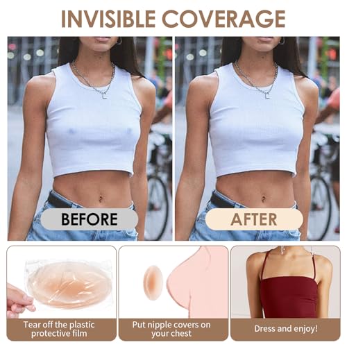 • Comfortable and supportive: Made from high-quality silicone, our nipple pasties are not only comfortable to wear, but also provide the support you need, 3.15" diameter for more secure coverage.suitable for cups A-D, 2 skin tones options available for your unique needs.You'll forget you're even wearing them!Whether you're wearing a backless dress, a sheer top, or a tight-fitting shirt, our nipple covers will keep you covered and protected.