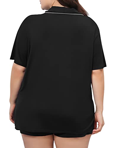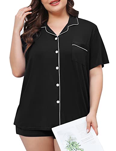 SWOMOG Women's Plus Size Pajamas Set Button Down Tops Short Sleeve Sleepwear Soft Pajama Shorts 2 Pcs Lounge Sets With Pocket 1