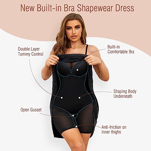 • Versatility Shapewear Dress: The non pressure hip design creates a peachy hips, the mesh lining sculpts the contours of your thighs, and the double-layered design on your tummy will smooth your tummy. The built in bra design helps to easily lift your bust, so you don't need to wear another bra. The fitted outer accentuates your fashion sense, while the shapely one-piece shapes the perfect figure.