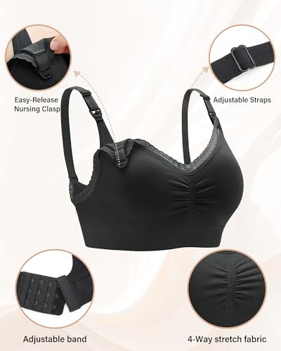 • Chic & Flattering Design: Feel confident and beautiful with a bra designed for function and flattery. Our sophisticated breastfeeding bras have an elegant deep-V neckline trimmed in soft lace and all-around support to keep your breasts lifted. Grab them in all 4 colors to enjoy effortless style every day