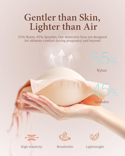 • Buttery Soft & Comfort Fit: Crafted with a luxurious nylon-spandex blend, this bra delivers a silky-smooth, skin-friendly feel that adapts to your changing body. The seamless, stretchy fabric and high elasticity ensure zero irritation during pregnancy, postpartum, or daily wear—perfect for sensitive, fluctuating breasts.