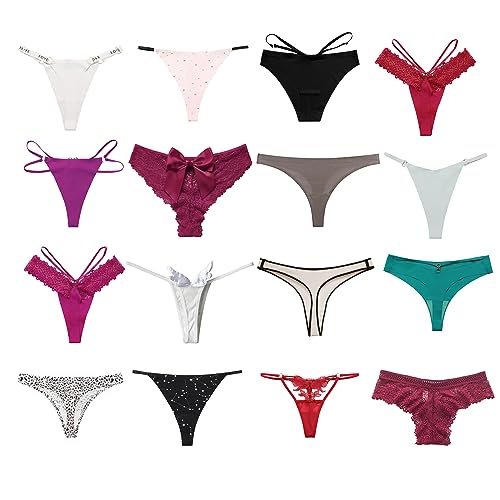 Women's Underwear Variety Pack Panties, Kinds of T-Back G-String Thongs, Lacy Briefs Hipsters Bikinis Undies Assorted 1