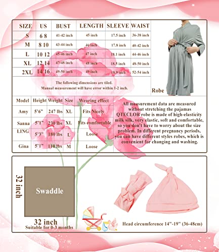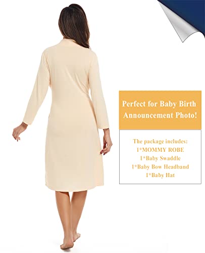 QTECLOR Maternity Robe with Matching Swaddle Blanket Set,Maternity Barhrobe Delivery Labor Robe for Hospital Women Dress 4