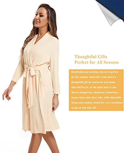 • Lightweight and Breathability of the Maternity Robe-Breathable and stretchy, this set is perfect for the summer maternity room and is a thoughtful gift for newborns and moms who will love it. At the same time, it can also be loungewear, sleepwear, bathrobes, sauna robes, and sister robe, with adjustable straps and pockets, which are very convenient to put on and take off.
