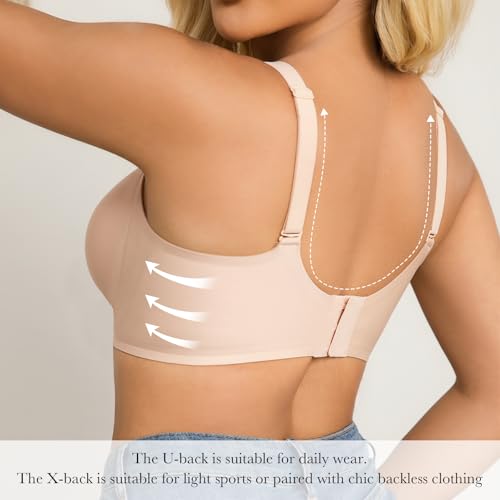 Seamless Bras for Women - No Underwire Lift & Shape V-Mesh, Everyday Comfort Wireless T-Shirt Bra with Full Coverage Support 4