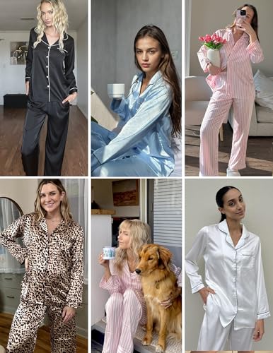 • Satin pajama set is made of Premium 95% Polyester+5% Spandex satin fabric. Ultra Soft Silk Ekouaer Sleepwear.