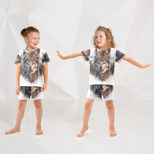 ALAZA Wolf Watercolor Landscape Pajamas Set Short Sleeve Cotton Sleepwear Summer Pjs 2 Piece 5-14Y 2
