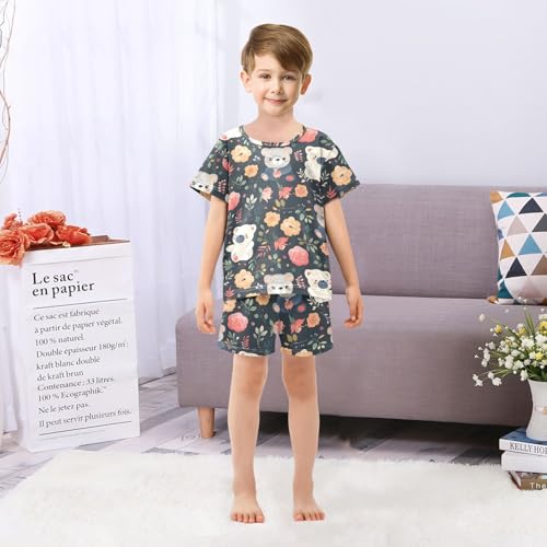 ALAZA Cute Bear Rose Flower on Black Pajamas Short Sleeve 2 Piece Sleepwear Top and Bottom Pajama Set Unisex 2
