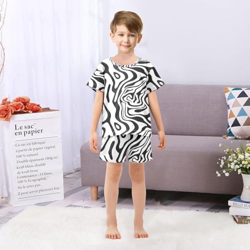 ALAZA Black White Zebra Print Striped Pajamas Set Short Sleeve Cotton Sleepwear Summer Pjs 2 Piece 5-14Y 1