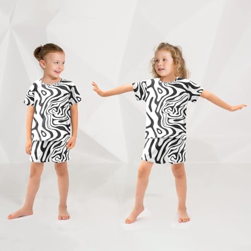 ALAZA Black White Zebra Print Striped Pajamas Set Short Sleeve Cotton Sleepwear Summer Pjs 2 Piece 5-14Y 5