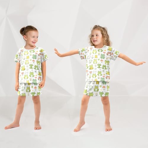 ALAZA Cute Frog Heart Blossom Pajamas Set Short Sleeve Cotton Sleepwear Summer Pjs 2 Piece 5-14Y 2