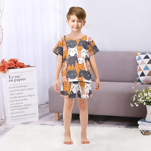 ALAZA Funny Cat Lovely Kitten Pajamas Set Short Sleeve Cotton Sleepwear Summer Pjs 2 Piece 5-14Y 5