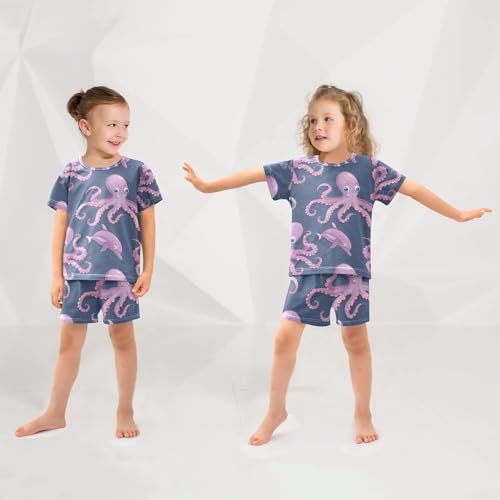 ALAZA Dolphin on Blue Pajamas Short Sleeve 2 Piece Sleepwear Top and Bottom Pajama Set Unisex 3