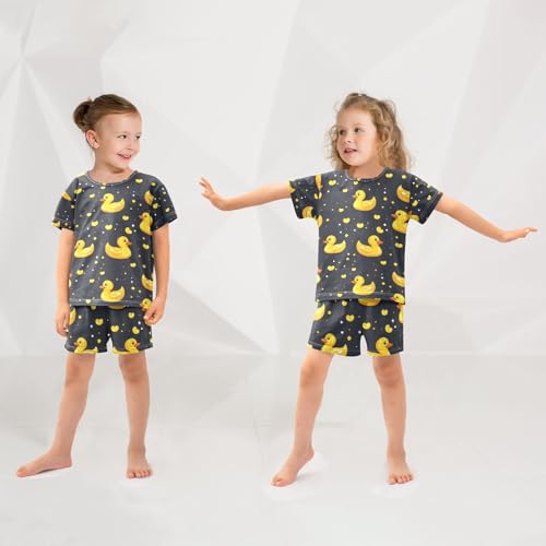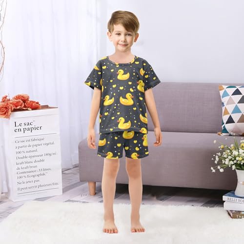 ALAZA Yellow Duck Heart Love Pajamas Set Short Sleeve Cotton Sleepwear Summer Pjs 2 Piece 5-14Y 2