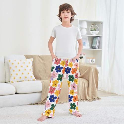 Simple Flowers Colorful Pattern Cute Pajama Pants, Soft Sleepwear Lounge Pants Pajama Pj Bottoms for 6-14 Years 4
