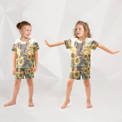 ALAZA Koala Rabbit Bunny Sunflower Blossom Pajamas Set Short Sleeve Cotton Sleepwear Summer Pjs 2 Piece 5-14Y 2