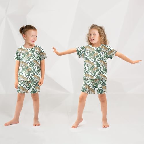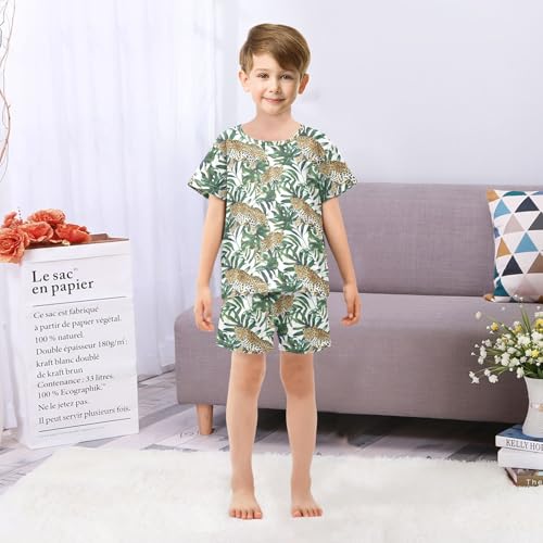 ALAZA Leopard Green Leaves Pajamas Short Sleeve 2 Piece Sleepwear Top and Bottom Pajama Set Unisex 2