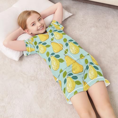 ALAZA Pear Cartoon Leaves Pajamas Satin Pajama Set Short Sleeve Button Down Sleepwear 1