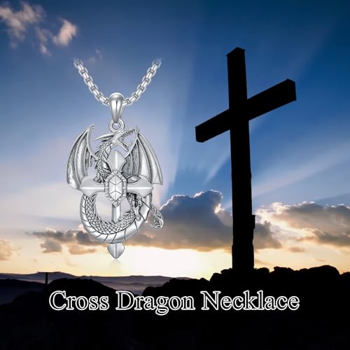 HOT ! Dragon Necklace - Sterling Silver Unique Dragon Cross Religious Ball Pendant Necklace Personalized Jewelry Gifts for Men - Stainless Steel Chain 22+2"