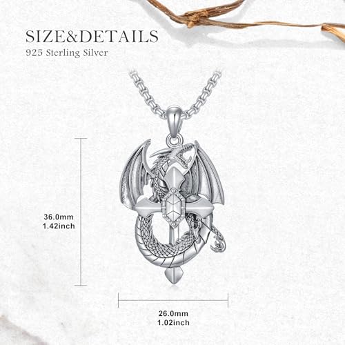 • 【Material and Size】Pendant size: 1.42 x 1.02 inches. Chain size: 22+2 inches. This personalized dragon necklace pendant is made of high-quality 925 sterling silver material, which is hypoallergenic, lead-free, nickel-free, safe for sensitive skin and comfortable to wear all day. The chain is made of stainless steel, which is durable and thick.
