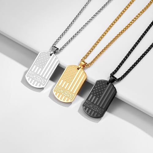 Best Dad Son Brother Grandson Grandpa Boyfriend Husband Ever Necklace, Stainless Steel Flag Dog Tags Jewelry, Birthday Valentine Christmas 3