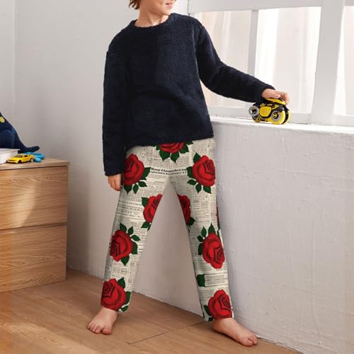Pajama Pants Pajama Bottoms with Elastic Waistband Sleepwear Lounge PantsRose Flowers Retro Newspaper 1