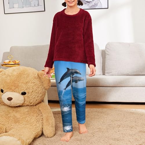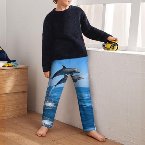 HOT ! Pajama Pants Pajama Bottoms with Elastic Waistband Sleepwear Lounge Pants, Ocean Dolphin Jumping Out Sea