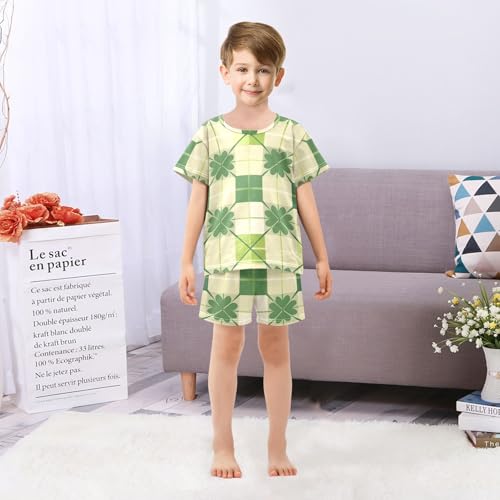 Summer Pajama Set Four-leaf Clover Checked Seamless Pattern, Short Sleeve Sleepwear Nightwear 1