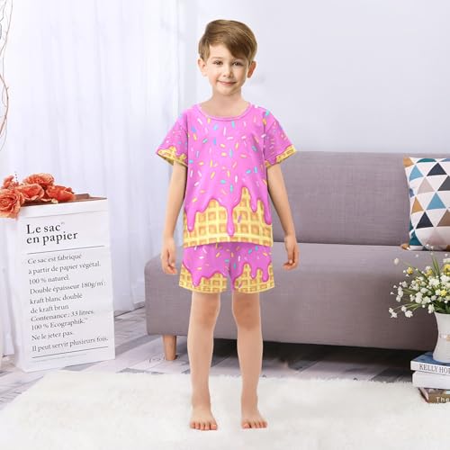 ALAZA Funny Waffle Ice Cream Pajamas Set Short Sleeve Cotton Sleepwear Summer Pjs 2 Piece 5-14Y 5