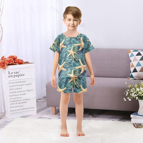 ALAZA Starfish Tropical Leaves Pajama Set Short Sleeve Sleepwear Soft Lounge Nightwear 1