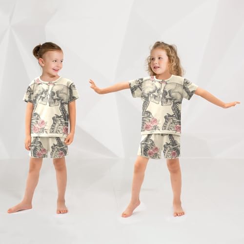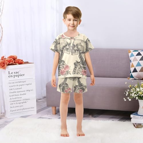ALAZA Romantic Skeleton and Roses Pajama Set Short Sleeve Sleepwear Soft Lounge Nightwear 1