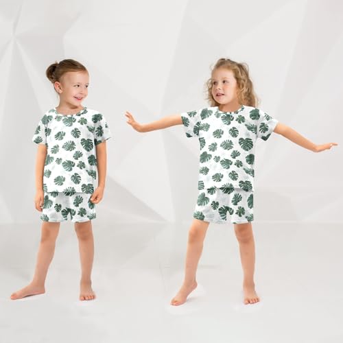 ALAZA Green White Leaves Pajama Set Short Sleeve Sleepwear Soft Lounge Nightwear 3