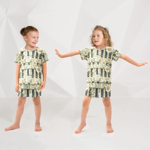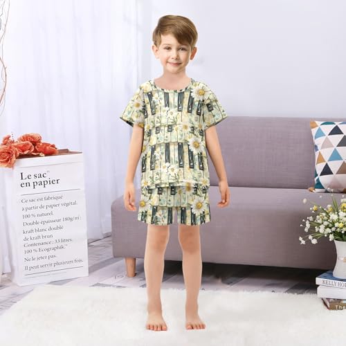 ALAZA Daisy Flowers Piano Keys Pajama Set Short Sleeve Sleepwear Soft Lounge Nightwear 3