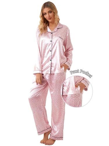Schbbbta Girls & Women Pajamas Set, 2 Piece Satin Silky Pjs Button-Down Kids Sleepwear, 3 Years - XX-Large 3