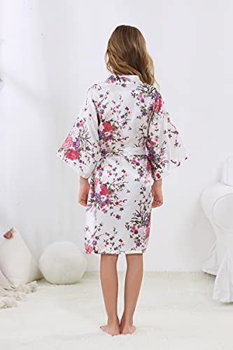 Girl's Kid's Silky Satin Floral Short Kimono Robe for Wedding Birthday Party Spa 4