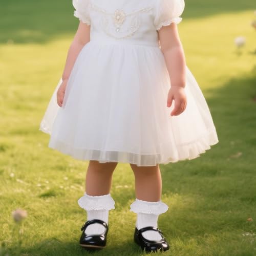 • Adorable Design: The cute design of these socks is sure to please any little girl. The timeless white color with elegant lace ruffle design is versatile enough to match with a variety of dresses, skirts, or even casual outfits, making them a must-have accessory for your girls' wardrobe
