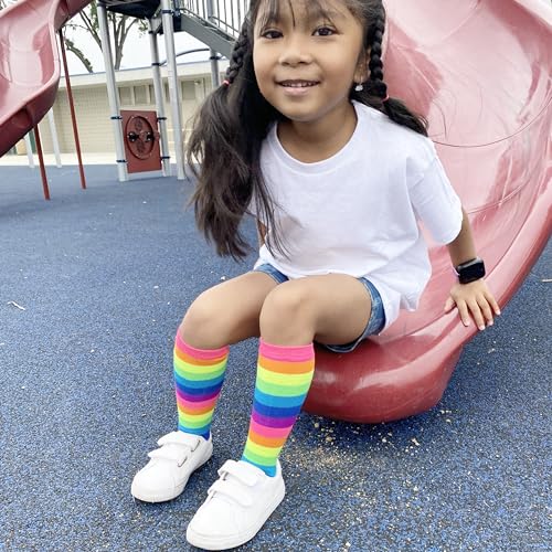 Rainbow Striped Youth Children Kids Fashion Colorful Non-skid Knee High Socks 4