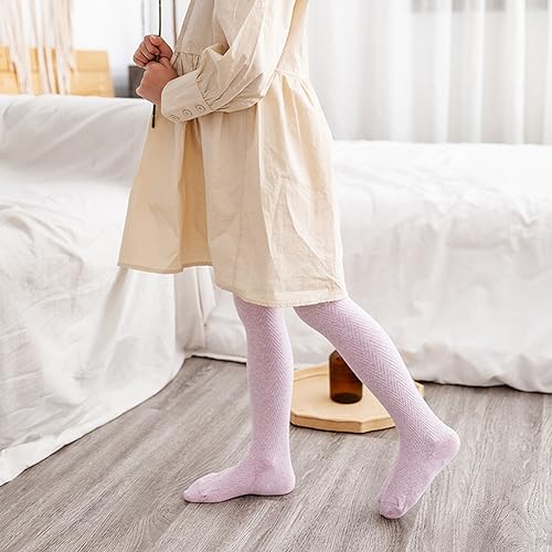 Looching 5 Pack Baby Toddler Girls Cotton Knit Tights Wavy Pattern Legging Stocking Pants Pantyhose for 1-10 Years Kids 4
