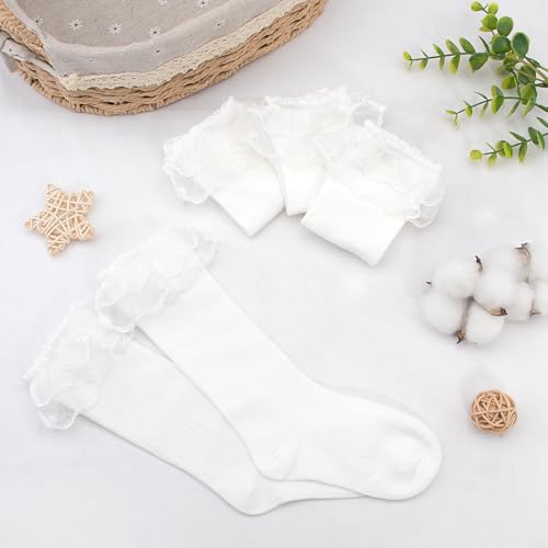 • Beautiful Double Lace Design: These adorable baby knee-high socks feature a cute double-layer lace trim, combining sweetness and style. Perfectly complements dresses, shorts, and little leather shoes, making them an ideal choice for every little girl!