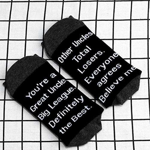 • Novelty uncle socks men uncle nephew gifts best uncle gifts you're a great uncle. big league. definitely the best. other uncles? total losers. everyone agrees, believe me.