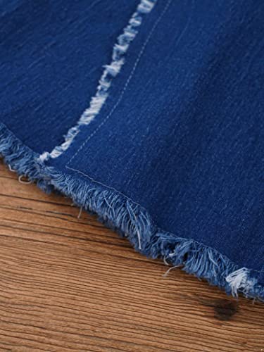 Girls Kids Distressed Ripped Hole Jeans Bell Bottom High Waist Wide Leg Ruffle Flare Denim Pants 6