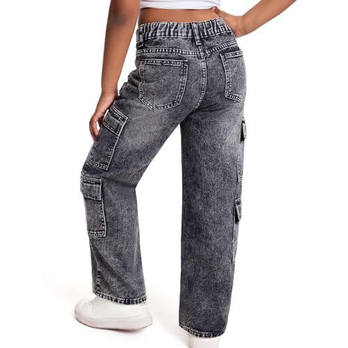 Girls Baggy Jeans High Elastic Waistband Wide Leg Denim Pants Y2K Streetwear Comfortable with Pockets Casual Trendy 6