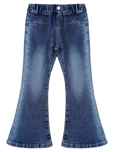 Kids Jeans Fashion Girls Slim-fit Flared Denim Pants Casual Elastic Waistband Bell-Bottom Wide-Leg Pants 6