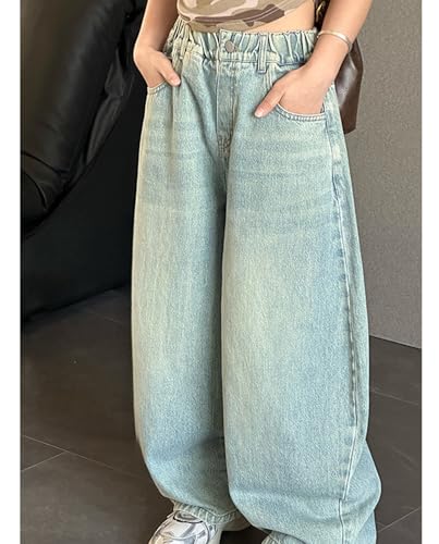Girls Baggy Jeans High Waisted Bucket Jeans Elastic Waist Wide Leg Denim Pants with Classic Pockets Cute Trouser 6