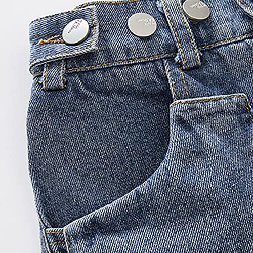 • Kids girls fashion straight jeans elastic waistband adjustable button denim pants for casual wear