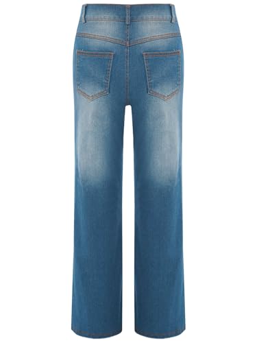 Fashion Girls Elastic Waist Denim Jeans Wide Leg Baggy Pants with Back Pockets for Girls 6-16 Years 6