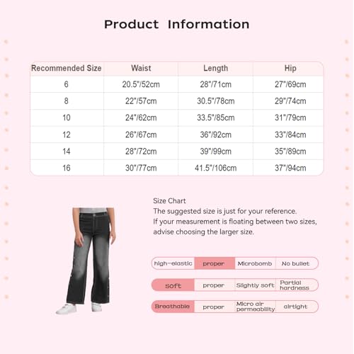 More information about Fashion Girls Elastic Waist Denim Jeans Wide Leg Baggy Pants with Back Pockets for Girls 6-16 Years