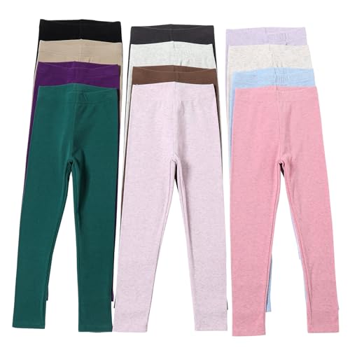 12 Pack Girls Leggings Soft Basic Pants for Girls Stretchy Full Length Leggings for Kids 5